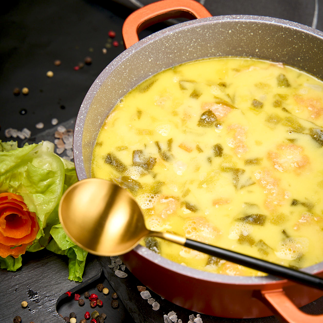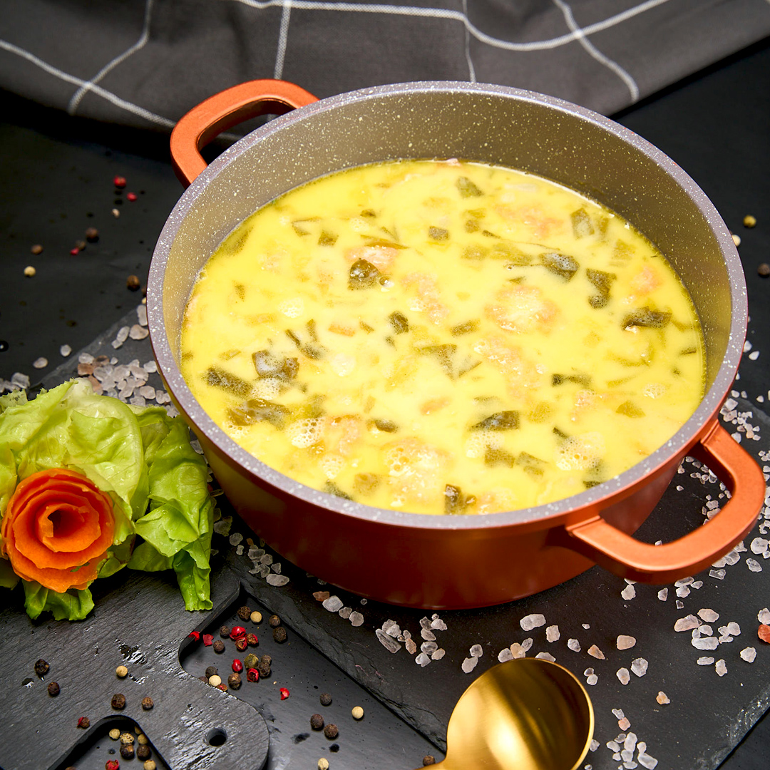 Contine: salata verde, oua, iaurt grecesc, telina, morcovi, ceapa, ardei gras, otet, patrunjel, sare, condimente. Alergeni: telina, oua, otet, lactoza.