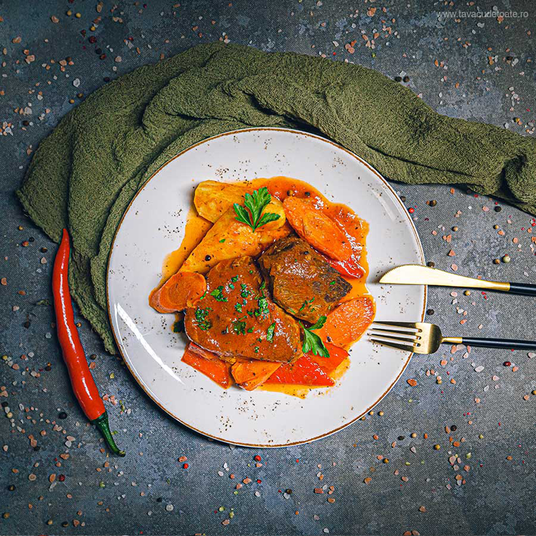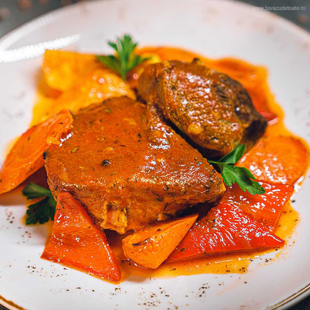 Etichete: ardei rosu, boia dulce, carne vitel, cartofi, ceapa, dafin, mancare, mancare gatita, morcovi, patrunjel, piper, sare, telina, tocanita, usturoi, vacuta, verdeta